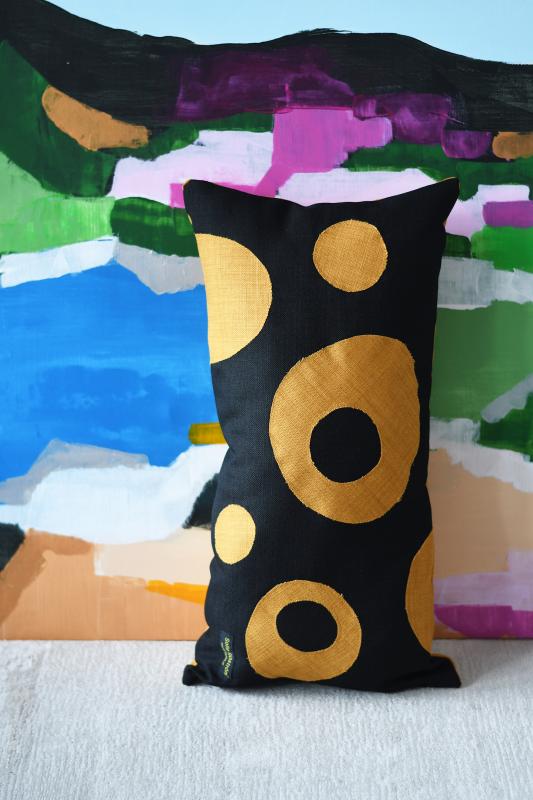 Handmade. Design: Sofie Sjöström. The pattern is sewn with appliqué on the front. The pillow is made of beautifully thicker durable furniture fabric. Dimensions 60x60 cm. Fits on the sofa or as a decoration on the bed.