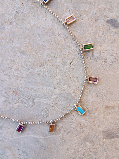 HAPPY Colorful necklace in wonderful zircon stones, 6x4 mm. The necklace is made of 925 Sterling silver and rhodium plated. Chain length: 40 + 5 cm.