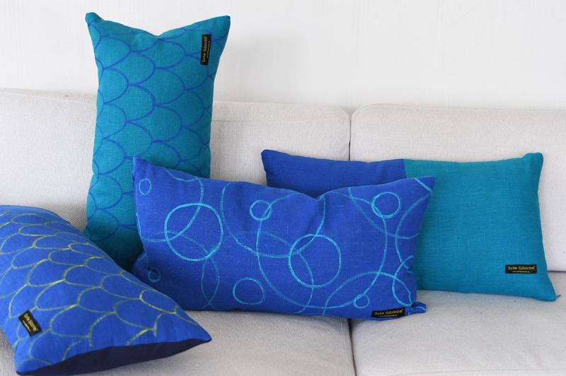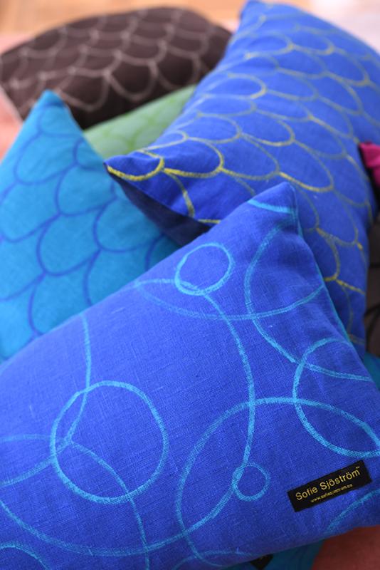 Handmade. Design: Sofie Sjöström. The pillow is made of beautifully linen fabric. Dimensions 65x35 cm. Fits on the sofa or as a decoration on the bed.