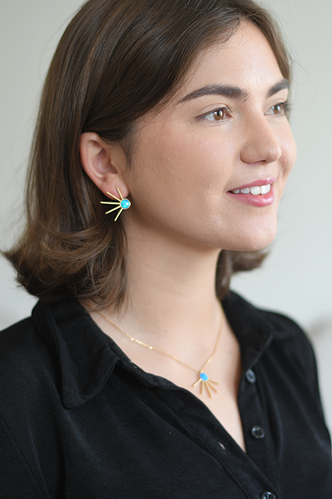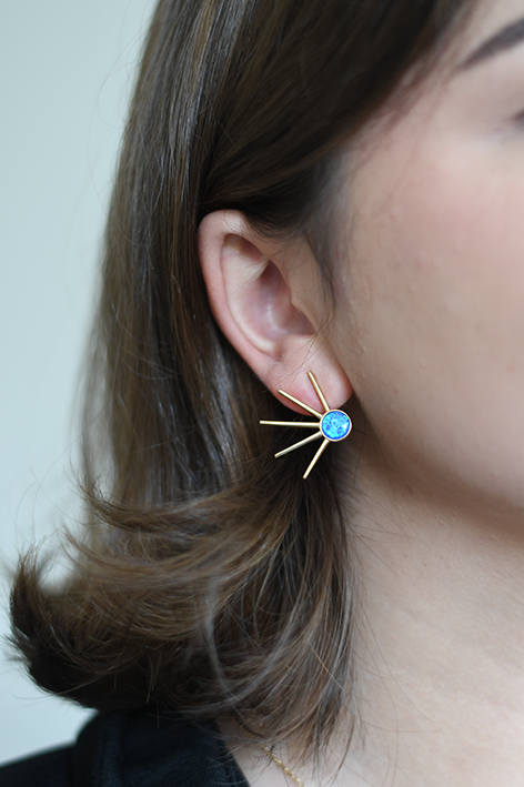 RADIANT BLUE OPAL Earrings in 925 Sterling silver with blue opal stone. Gold plated. Charm size: 23 x 38 mm