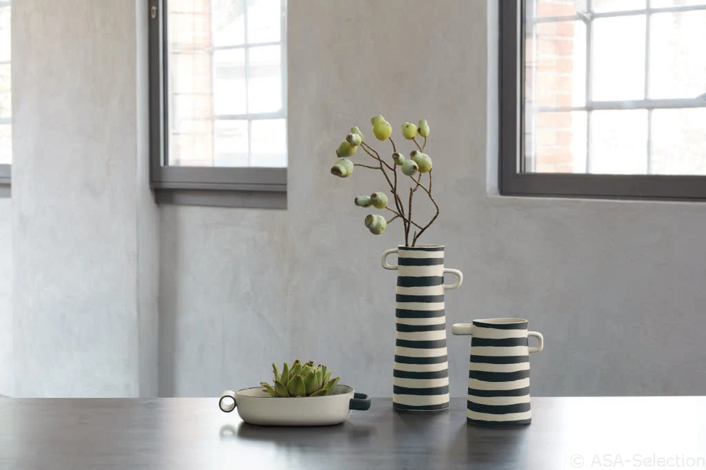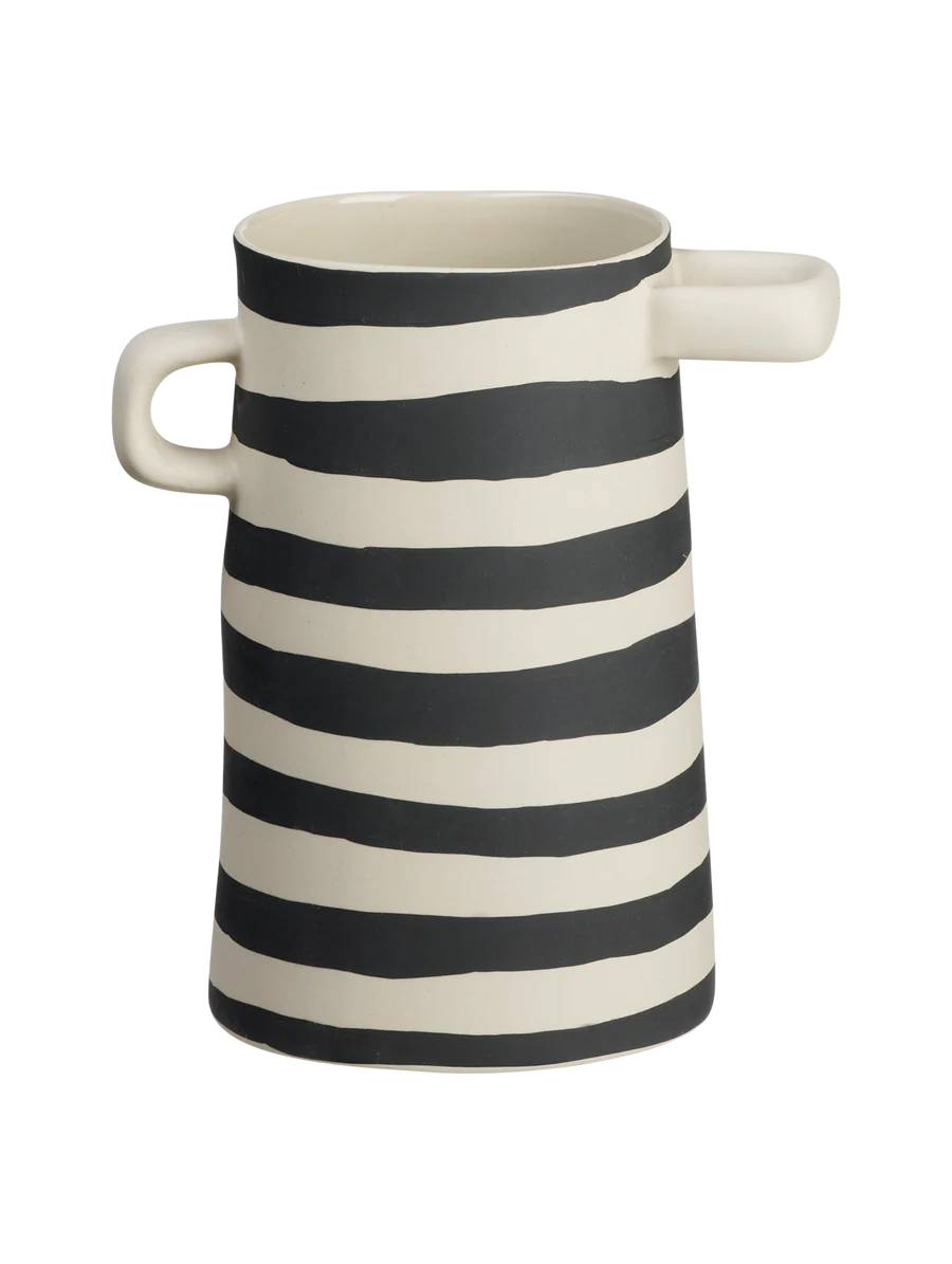 New Wide-striped vase 17 cm Graphic vase Watch this product and we will notify you once it is back in stock. The product is now watched We will notify you once the product is back in stock again. E-mail Watch this product Your personal information is processed in accordance with our privacy policy. Wide-striped vase 17 cm Graphic vase Graphic playful vase in stoneware that is hand-painted in a matte black color. Height: 17 cm Diameter: 11 cm Share