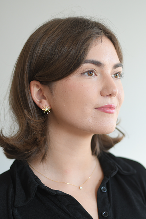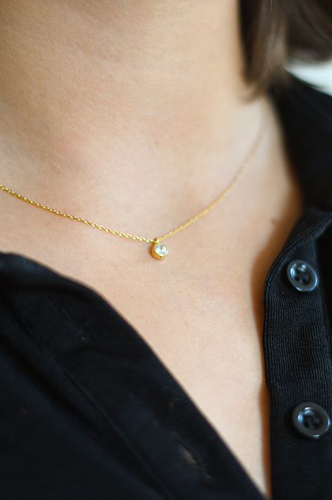 ALVA Handgjort minimalistiskt halsband i 925 Sterling silver, med guldplätering. Infattad Zirkon sten, 5mm i diameter. Kedjelängd: 40 + 5 cm.