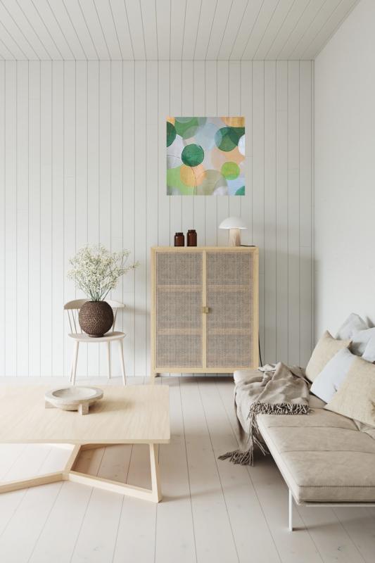 Målning i akryl 50 x 50 cm. Levereras med vit ram från Uppsala ramverkstad.