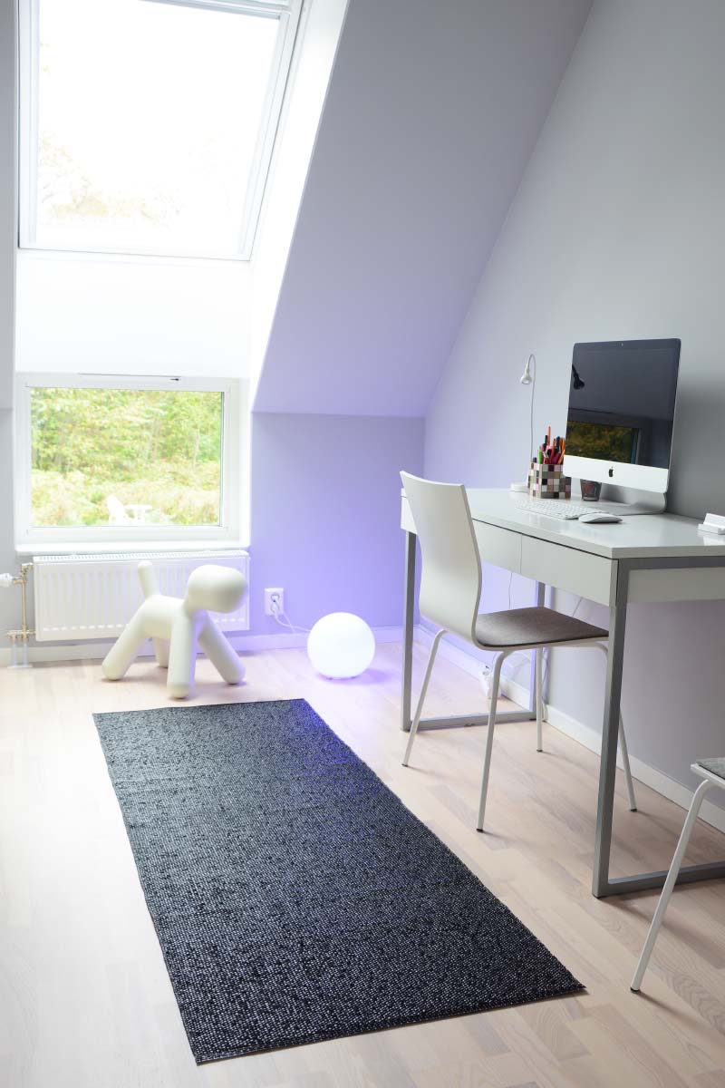 Flip är den vändbara mattan med två olika kulörer. Få variation i hemmet genom att bara vända mattan och förnya färgsättningen. Två mattor i en! Våra härliga mattor i kulörta och mer neutrala nyanser är tillverkade i Sverige med traditionell vävteknik för att erhålla bästa kvalité. De tillverkas av PVC folie och varp. Mattan passar hall, kök, matrum, vardagsrum, sovrum och balkong. Flip dammar inte och är inte allergiframkallande. Mattan ligger dikt an och stadigt på golvet. Tvättråd: Maskintvätt utan centrifugering eller handtvätt 30°. Man kan även spola bort fläckar med vatten. Sträck och forma mattan i vått tillstånd och torka plant eller rullad.