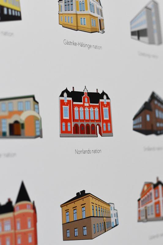 Signerad Poster A2 Uppsalas nationer. Illustration: Sofie Sjöström.