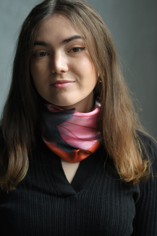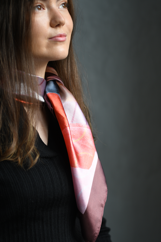 Unna dig en satin scarf á la Sofie Sjöströms målning Lipstick. Underbar kvalitet, färgstark och mjuk mot huden. Tuff satin scarf med fin glans och fall, som går att kombinera med det mesta.